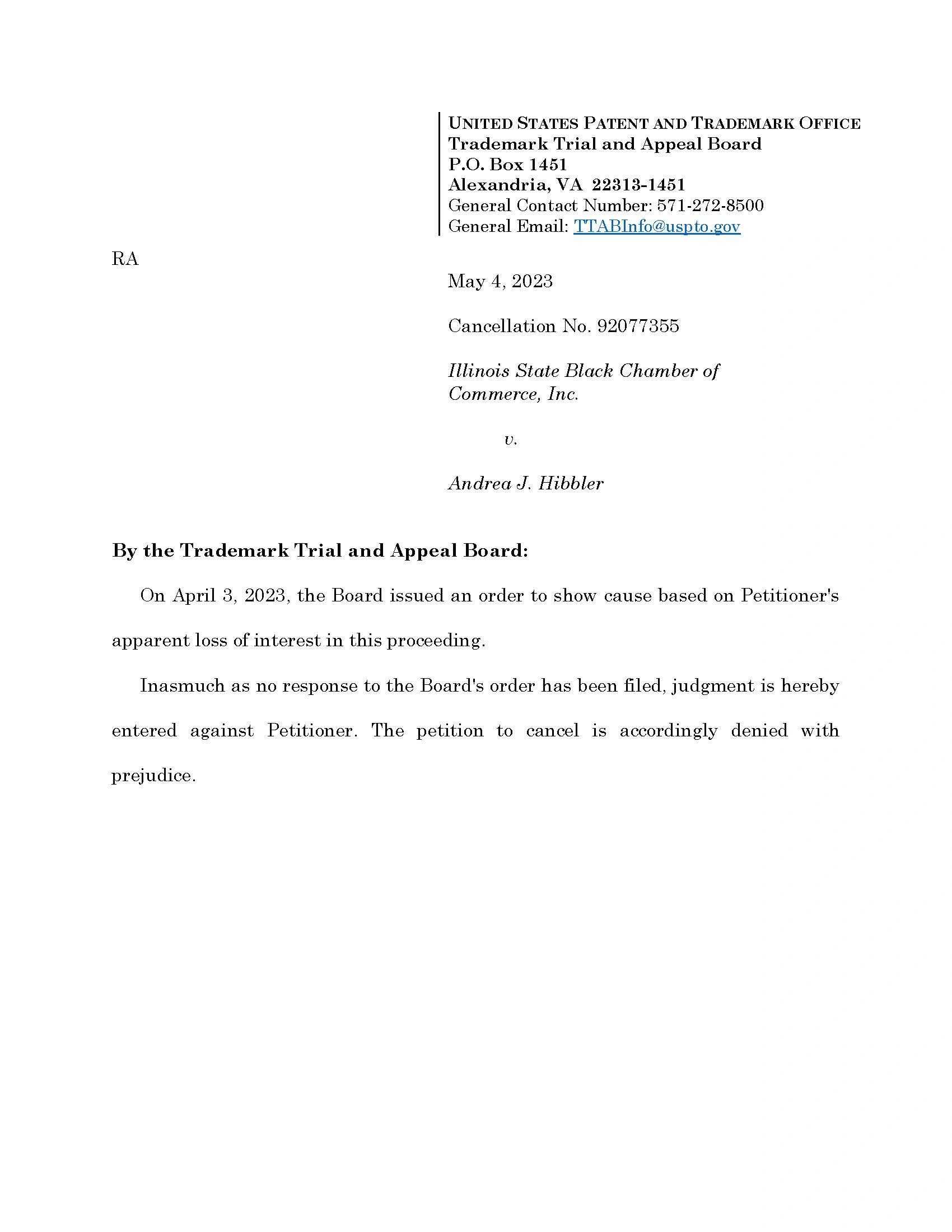 An organization filed a petition in 2021 and tried to get their name trademarked and our name canceled. When they could not succeed, they fraudulently used our corporate Name to obtain a principal mark, stating on their application that their organization is AKA Illinois Black Chamber of Commerce.